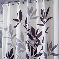 - Fabric shower curtain with a Zen-inspired leaf pattern